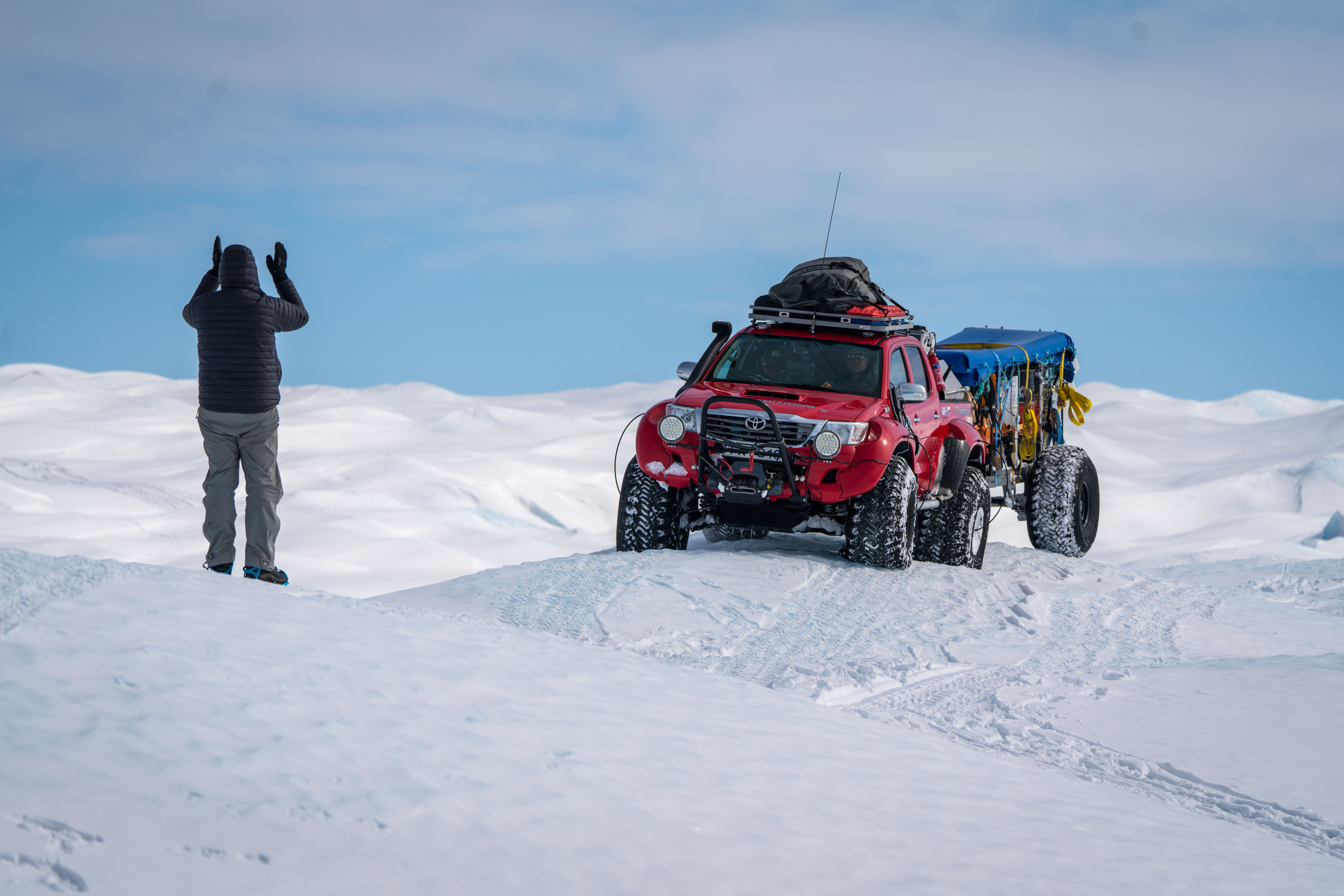 The expedition occurred in spring of 2018 and utilized three Arctic Trucks-prepared Toyota Hilux trucks to transport fuel, equipment, and personnel on the journey. In addition to Greg Miller, there was a video crew, medical support, mechanics, and drivers along for the ride.
